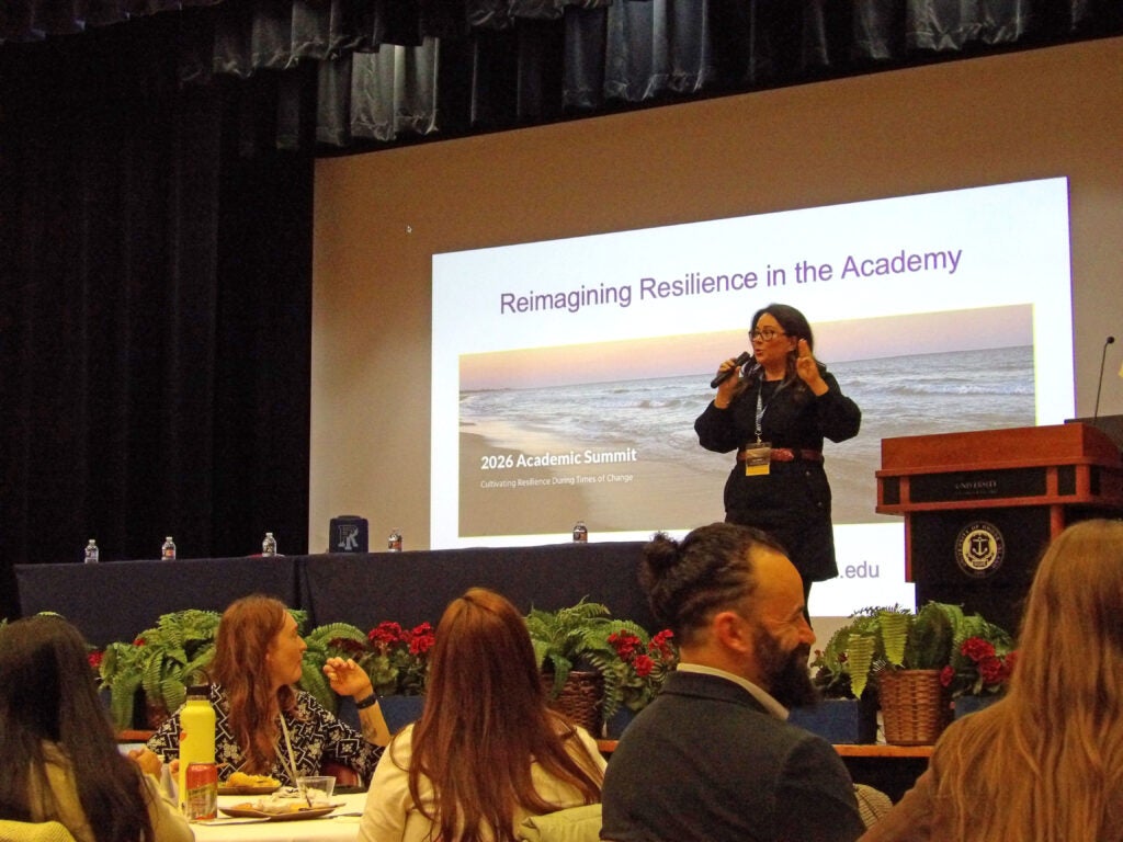 Organized by the Office of the Provost on Thursday, January 15, 2026, faculty and staff gathered in the Memorial Union for the 2026 URI Academic Summit, a full-day event focused on resilience in academic life. The theme this year was Cultivating Resilience During Times of Change. Throughout the day, participants engaged in thoughtful discussions on core academic principles, resilience in teaching and research, coping with loss and adversity as a community, and the importance of compassion and self-care.