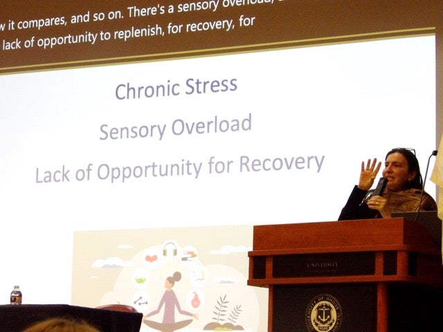 URI faculty and staff joined were joined by the event’s keynote speaker, Dr. Mays Imad, Associate Professor of Biology at Connecticut College and Senior Fellow of the AAC&U STEM, as well as a Teaching & Learning Fellow at the Gardner Institute, who share her research on the neuroscience of resilience.