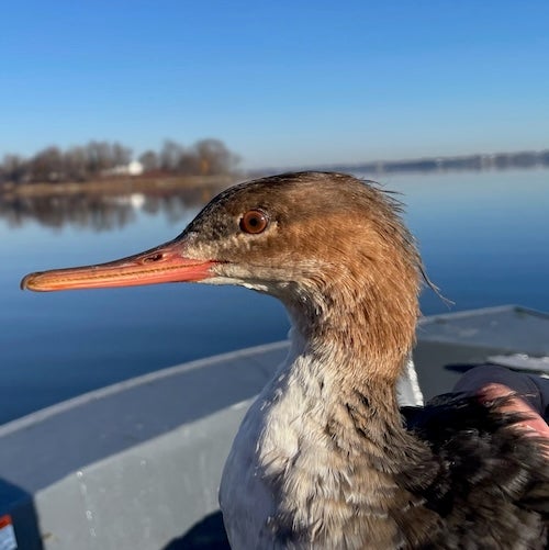 A red-breasted merganser. All birds handled with proper permitting.