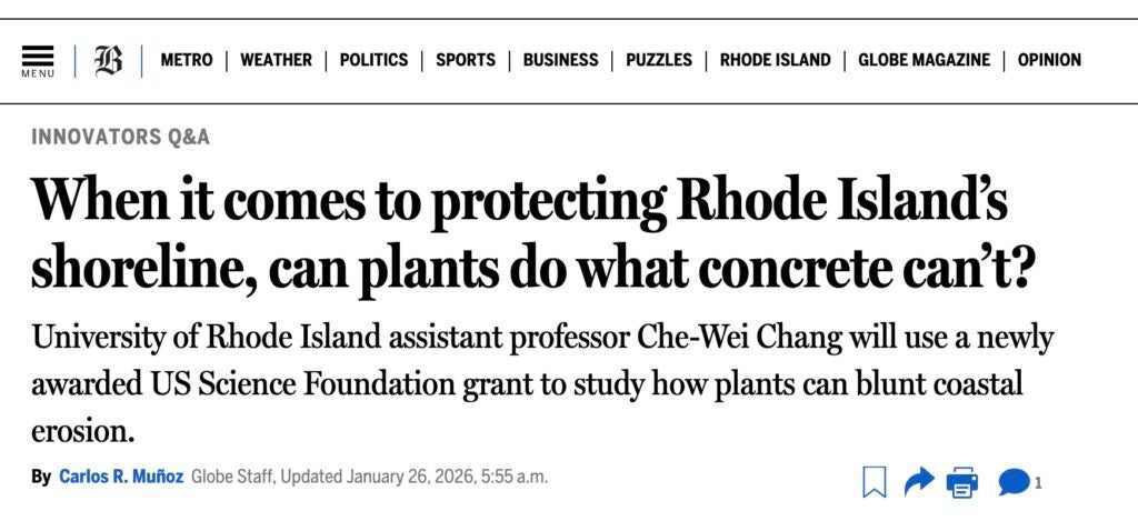 Dr. Chang was interviewed in The Boston Globe’s “Innovators Q&A,” where he discussed his research on coastal resilience, nature-based solutions, and his recently funded project.