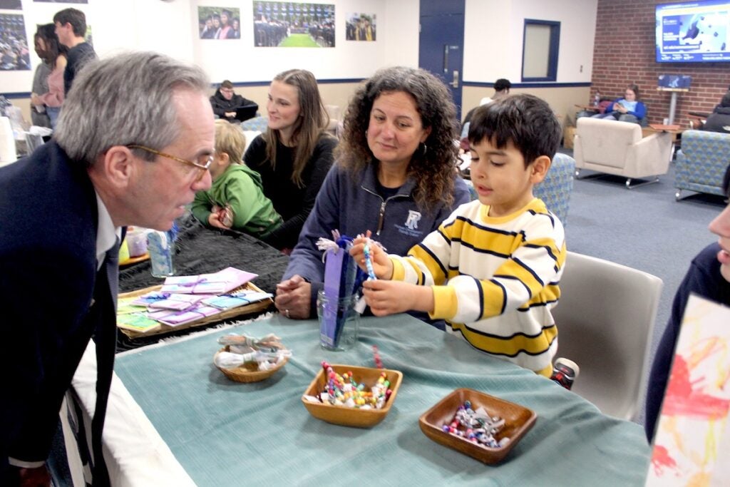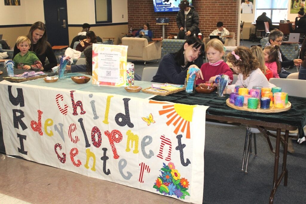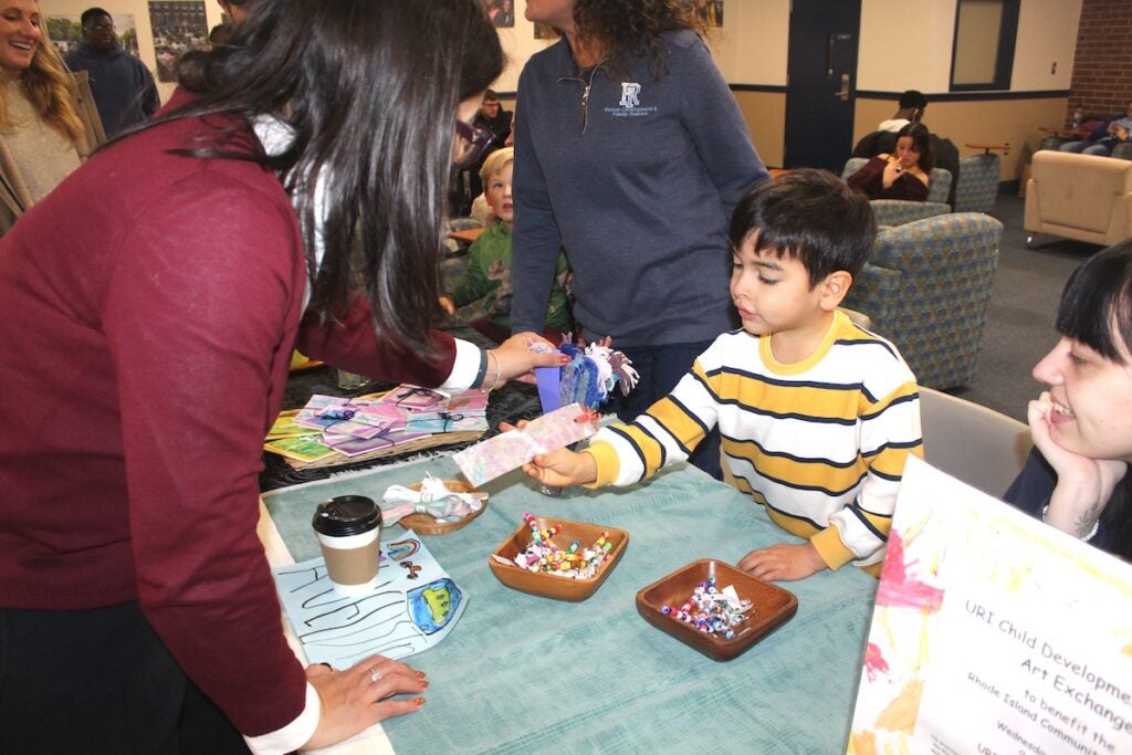 The University of Rhode Island Child Development Centers raised more than $1,000 and collected several boxes of non-perishable food items as it hosted its annual Art Exchange in the Memorial Union last week to benefit the Rhode Island Community Food Bank. Students of the preschool, along with Director Jessica MacLeod and her staff of teachers and student interns, offered handmade works of art as a thank-you for donations.