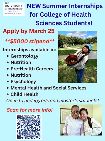 The College of Health Sciences is now offering paid summer internships for undergraduate and master’s students. These opportunities are made possible by generous donors who are committed to preparing skilled professionals to tackle issues such as aging populations, rising mental health needs, and complex public health challenges through classroom education and hands-on training. All of the internships include a $5000 stipend and run from May 18 to July 24, 2026. The deadline to apply is March 25.