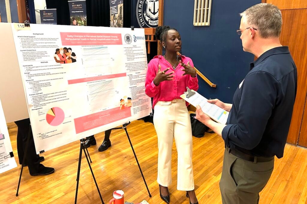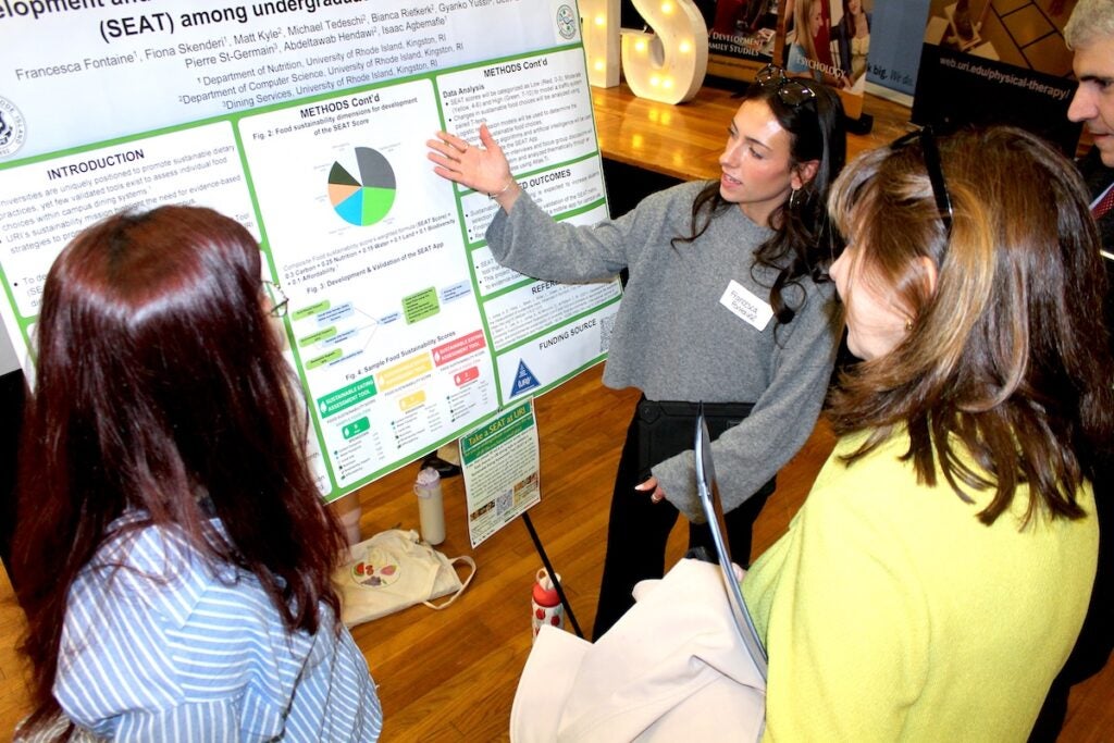 Dozens of students from multiple departments in the University of Rhode Island College of Health Sciences showed off their dynamic research projects on various health topics during the college’s annual student Research Night on April 6.