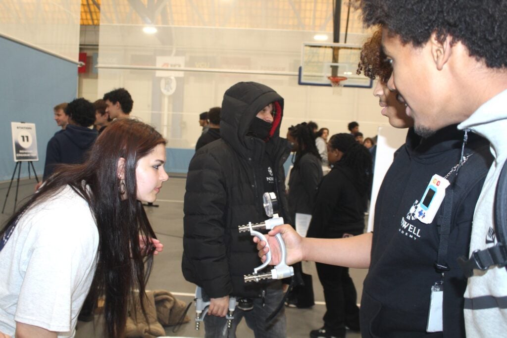 The exhibits organized by professors and graduate students in kinesiology, physical therapy, biomedical engineering, and strength and conditioning showed students what is available to them at URI. The hands-on nature of the disciplines showed students how science can apply directly in their daily lives and, hopefully, encourages those interested in science and technology to see kinesiology, biomechanics, or other STEM fields as a viable option for them in the future, according to Associate Professor Susan D’Andrea.