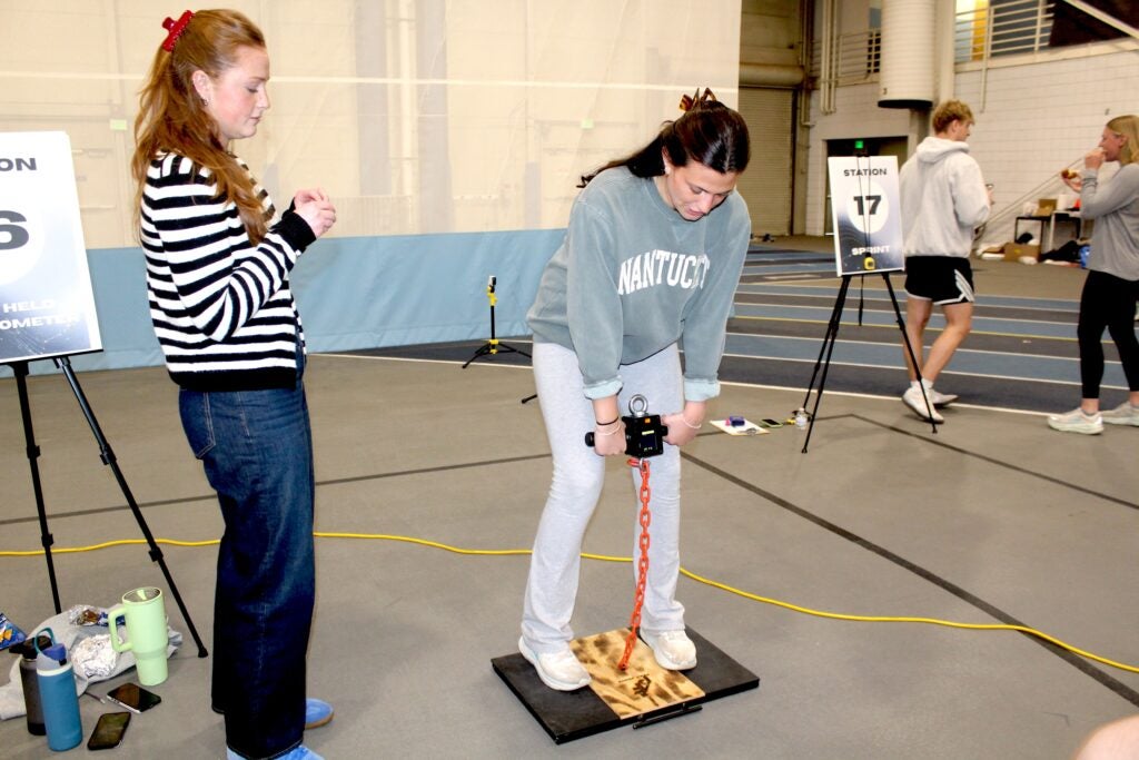 High school and middle school students from around the state got a hands-on experience with the high-tech equipment used by the University of Rhode Island College of Health Sciences during URI’s annual celebration of National Biomechanics Day in Mackal Field House on April 8.