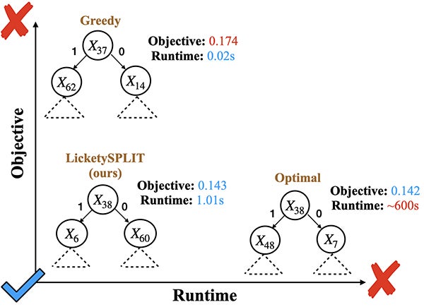 Decision tree optimization is fundamental to interpretable machine learning. The most popular approach is to greedily search for the best feature at every decision point, which is fast but provably suboptimal. Recent approaches find the global optimum using branch and bound with dynamic programming, showing substantial improvements in accuracy and sparsity at great cost to scalability. An ideal solution would have the accuracy of an optimal method and the scalability of a greedy method. We introduce a family of algorithms called SPLIT (SParse Lookahead for Interpretable Trees) that moves us significantly forward in achieving this ideal balance. We demonstrate that not all sub-problems need to be solved to optimality to find high quality trees; greediness suffices near the leaves. Since each depth adds an exponential number of possible trees, this change makes our algorithms orders of magnitude faster than existing optimal methods, with negligible loss in performance. We extend this algorithm to allow scalable computation of sets of near-optimal trees (i.e., the Rashomon set).