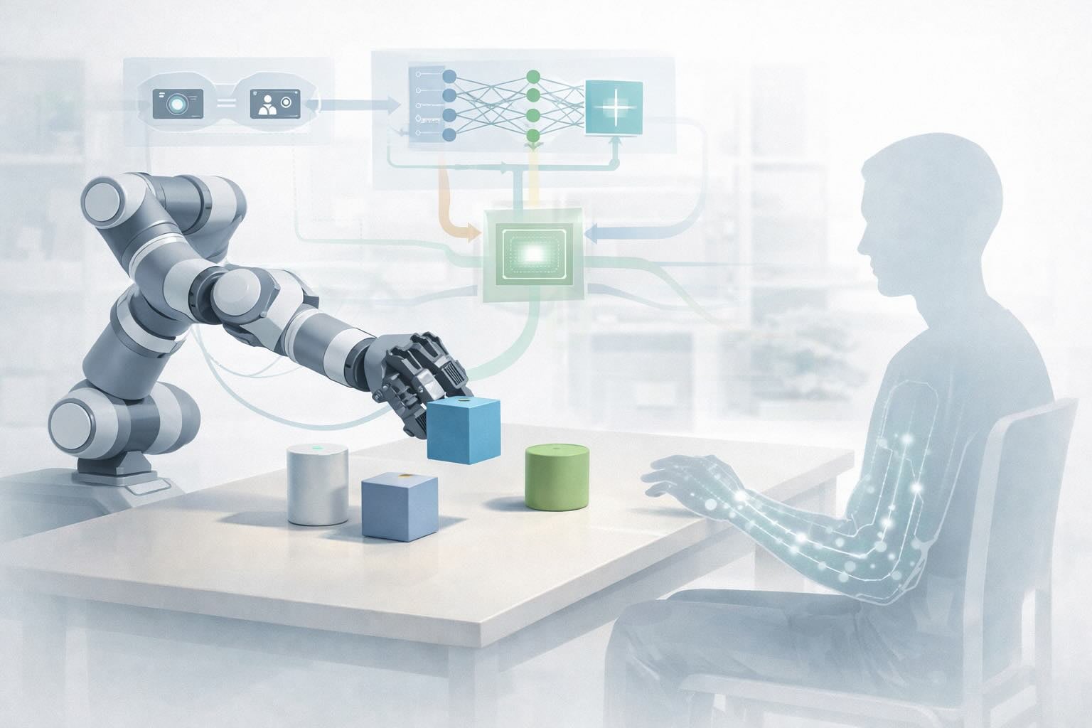 This NSF CAREER project addresses a critical challenge in assistive and rehabilitation robotics: enabling individuals with severe motor impairments, such as spinal cord injury or ALS, to independently control complex, high-degree-of-freedom robotic arms for everyday tasks like reach-and-grasp. While existing assistive interfaces can support low-dimensional control (e.g., wheelchairs or cursors), they fall short when users must operate dexterous robotic systems that require precise, multi-dimensional input.