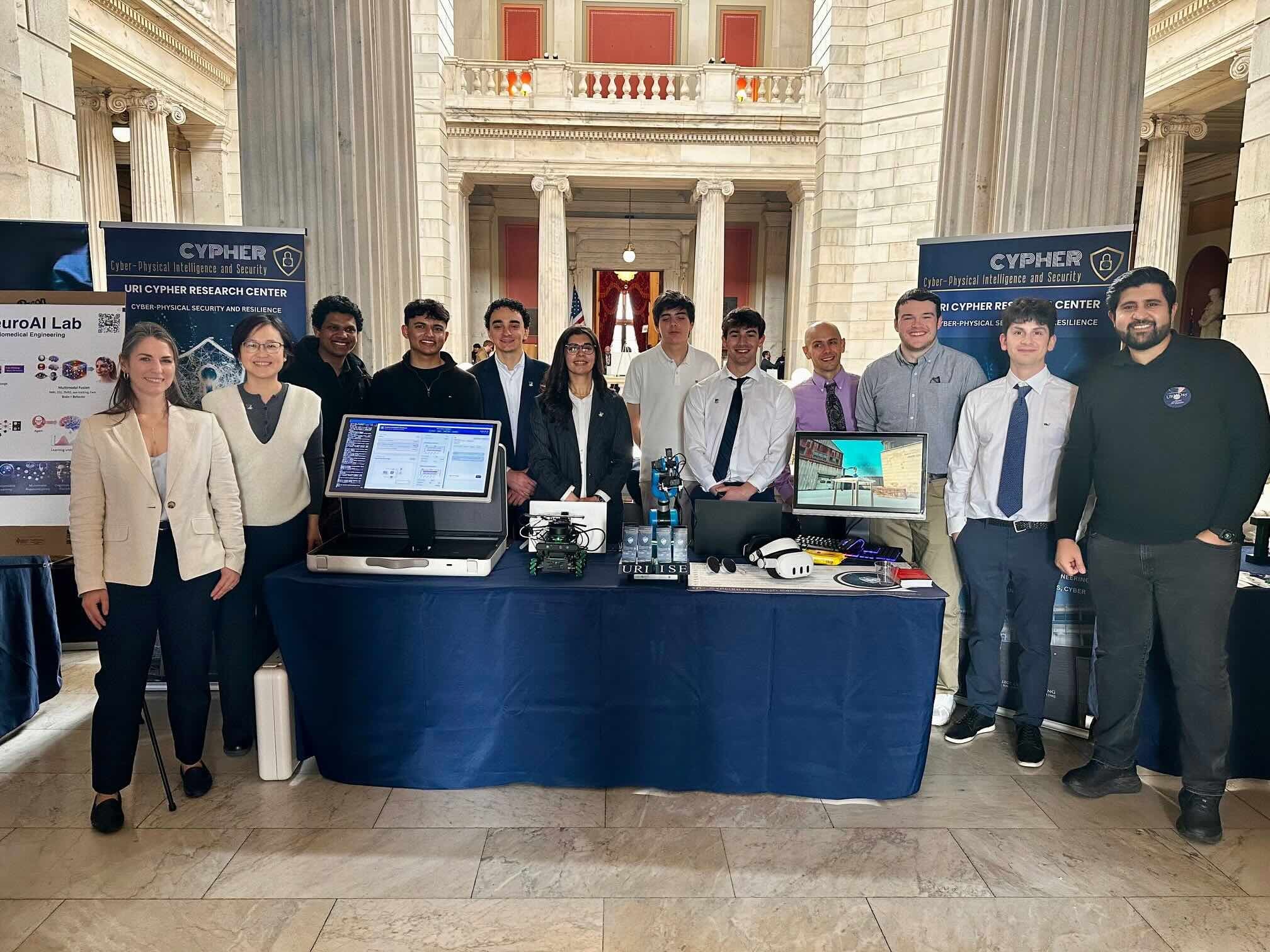 In addition to research demonstrations, the CYPHER team promoted the College of Engineering’s newly approved artificial intelligence and machine learning (AI/ML) certificate. Attendees were invited to participate in a one-question survey asking what the most important step the College of Engineering can take in 2026–2027 to advance AI/ML education in Rhode Island—encouraging direct engagement with policymakers and the public on the future of technology education in the state.