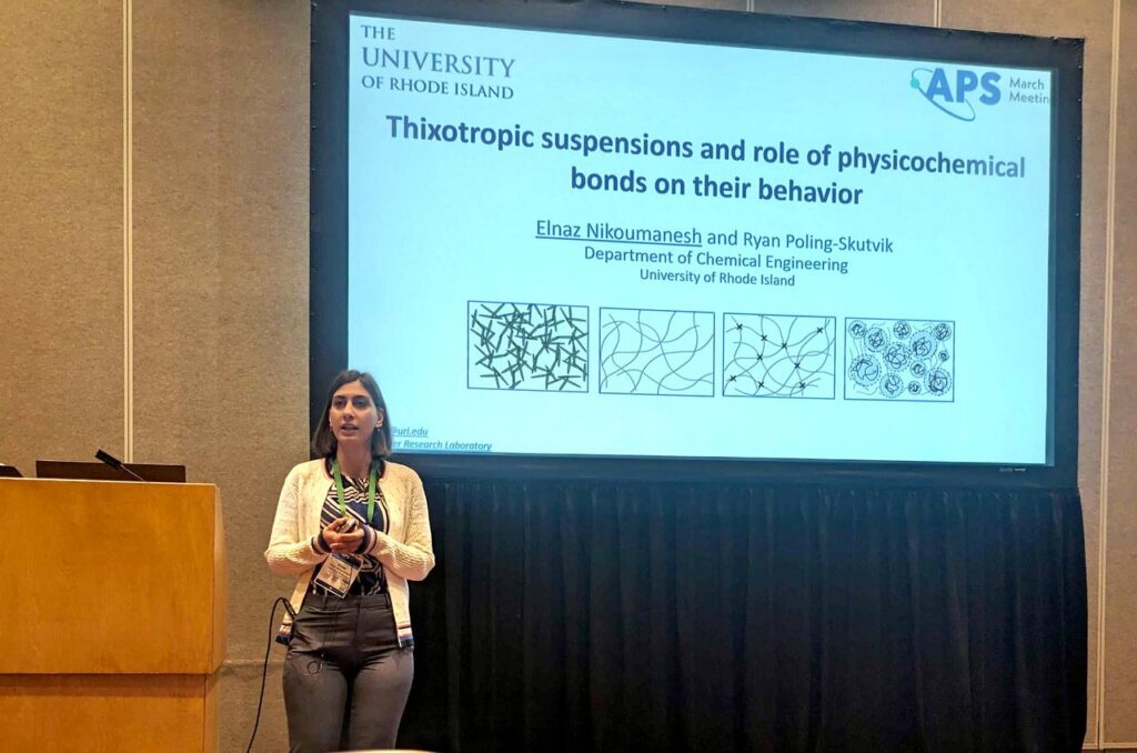 Nikoumanesh received several awards over the last five years and traveled to many locations for conferences and presentations including the Women in Chemical Engineering Travel Award to present her research at the 2025 AIChE Annual conference and selection as one of MIT’s Rising Stars in Mechanical Engineering. She also received multiple student travel awards and in 2024, she won first place at the annual URI Chemical Engineering Research Symposium and was invited to speak at the Society of Rheology Future of Rheology Seminar Series.