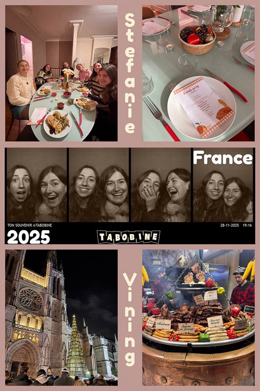 Outside of work, Vining has really enjoyed building a sense of community. She hosted a “Friendsgiving” with her French friends this year as a way to share a bit of American culture and celebrate the holiday together. “It was a lot of fun to share foods they had not previously experienced, although we did opt for a rotisserie chicken instead of a full turkey!” Vining admitted. Over the winter, she also visited several Christmas markets in Bordeaux, Paris, and small tucked-away châteaux (castles), which really highlighted for her how festive and communal the season is there.