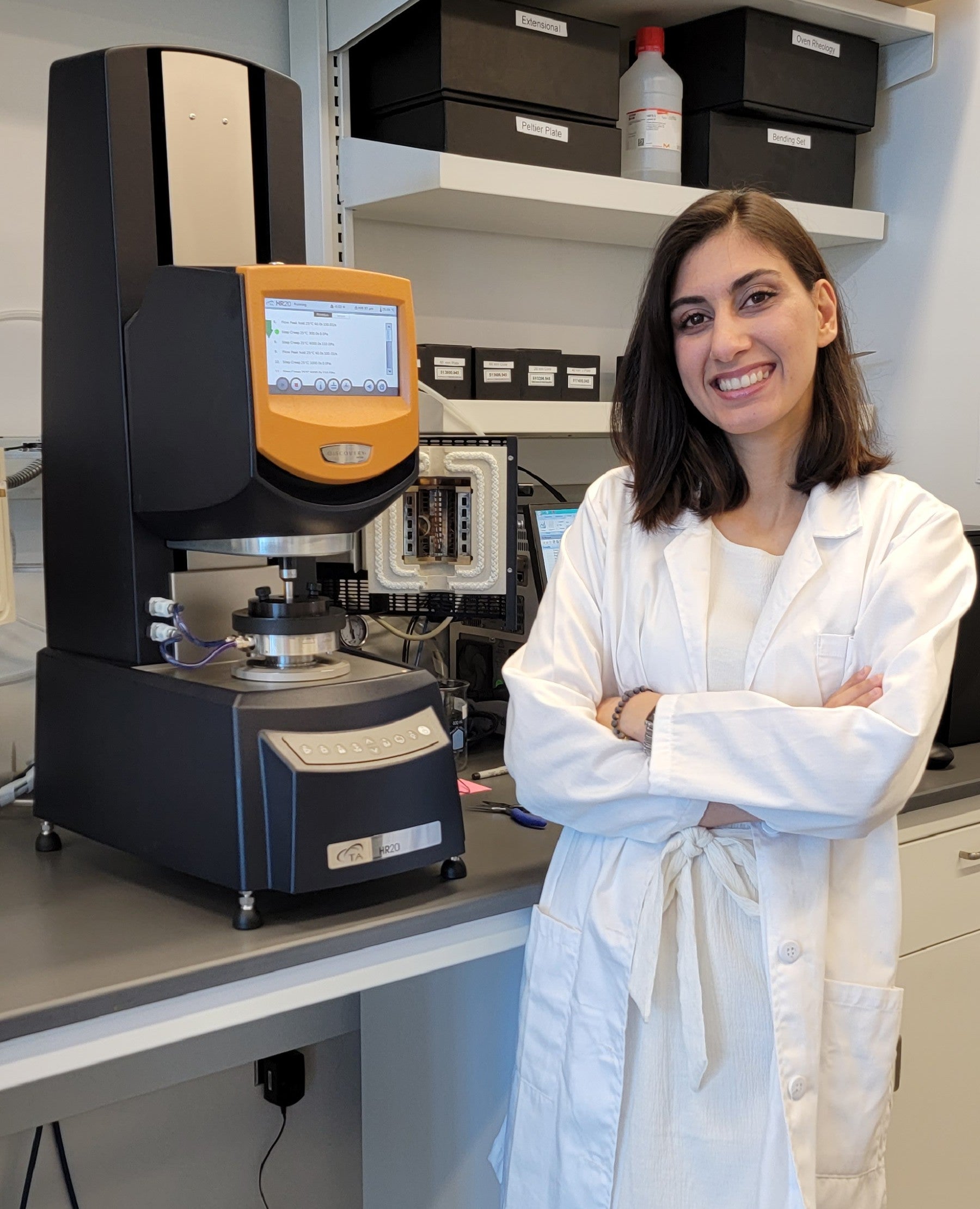 Mechanical engineering, chemistry and physics may seem like three separate areas of study, but they overlap in more ways than one. Elnaz Nikoumanesh, a fifth-year Ph.D. chemical engineering candidate, knows that well. She studied mechanical engineering during her undergraduate and master’s studies, but became very interested in experimental work with biological and soft materials. This led her to the chemical engineering Ph.D. program at the University of Rhode Island, specifically to research soft materials and rheology, a type of physics that studies how matter deforms and flows.