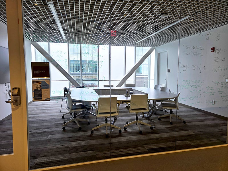 All rooms include whiteboards and are available to engineering students on a first-come, first-served basis unless otherwise reserved. Conference rooms also feature projectors or large displays for presentations and screen sharing.