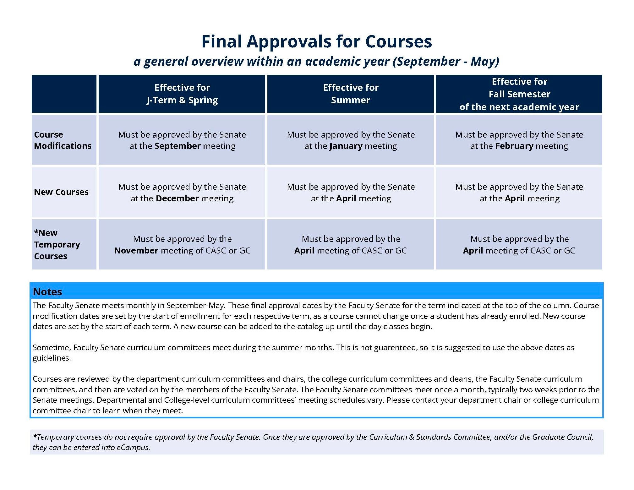 The dates provided are recommended. Ideally, the College Curriculum Committees would meet after receiving the Temporary & Newly Proposed Course Email to verify on behalf of their college that the courses listed do not have any content overlap with courses coming from other colleges.