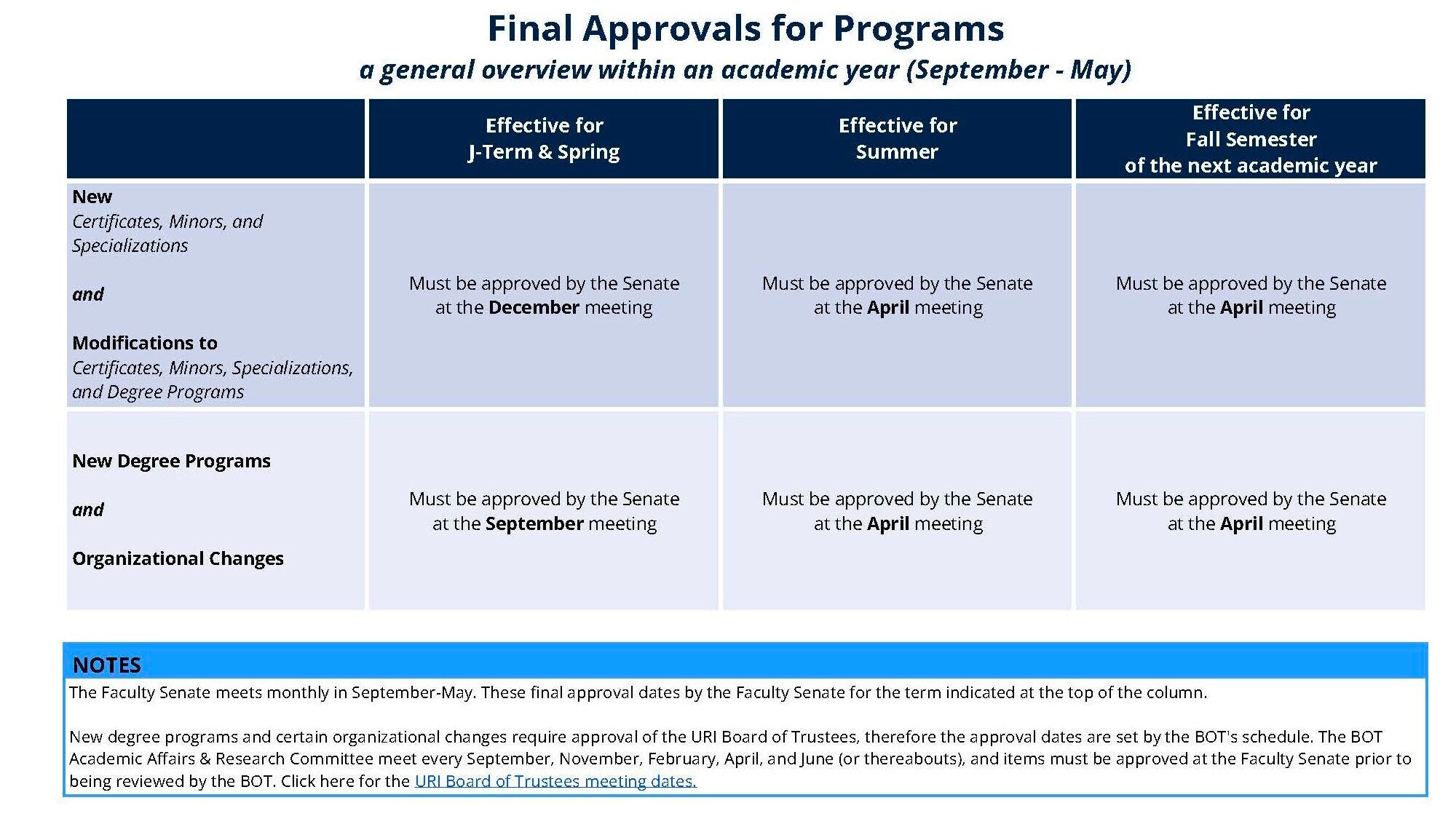 • Approvals required after Faculty Senate action (e.g., URI President’s approval for all programs, and Board of Trustees’ approval for new majors and degrees)