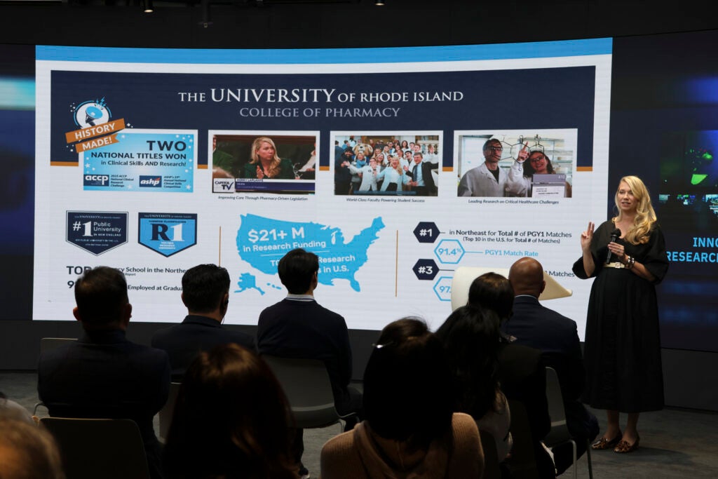 Guests heard from Dr. Kerry LaPlante, Dean of the College of Pharmacy, and Dr. Sean Edmund Rogers, Dean of the College of Business, who shared insights into URI’s innovation in aging and infectious diseases and the business of fashion. Attendees connected with alumni, industry leaders, university leadership, and faculty from the Colleges of Business, Pharmacy, and Engineering to learn more about academic programs, research, and the student experience at URI. They also had the opportunity to learn more about studying at URI and available programs.
