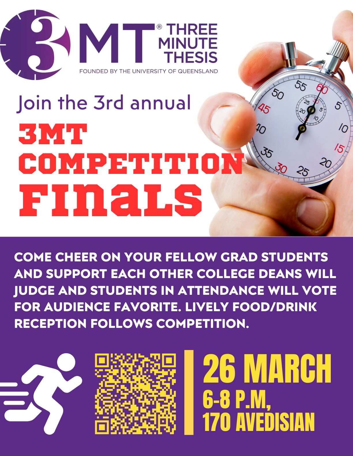 Created by the University of Queensland, participation in the 3MT competition helps graduate students improve their ability to communicate their research and explain their work clearly and concisely to those outside their field of study.