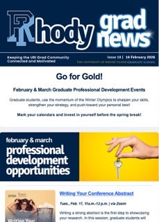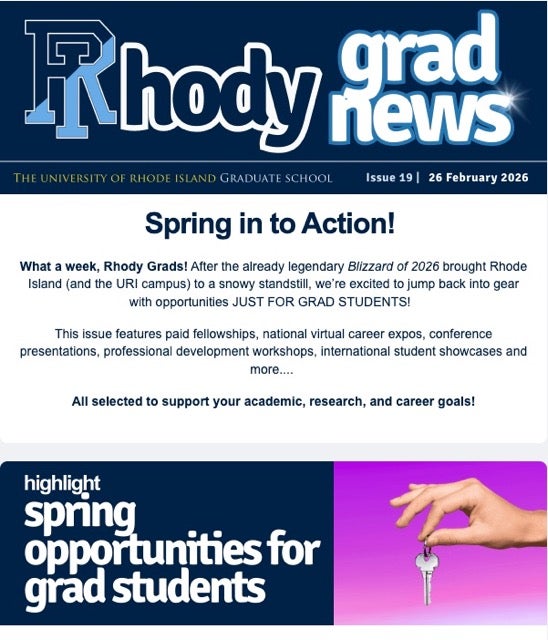 The Bi-monthly newsletter of the University of Rhode Island Graduate School is your go-to source for advice on programs, events, academic challenges, career development, and connecting with fellow grad students.