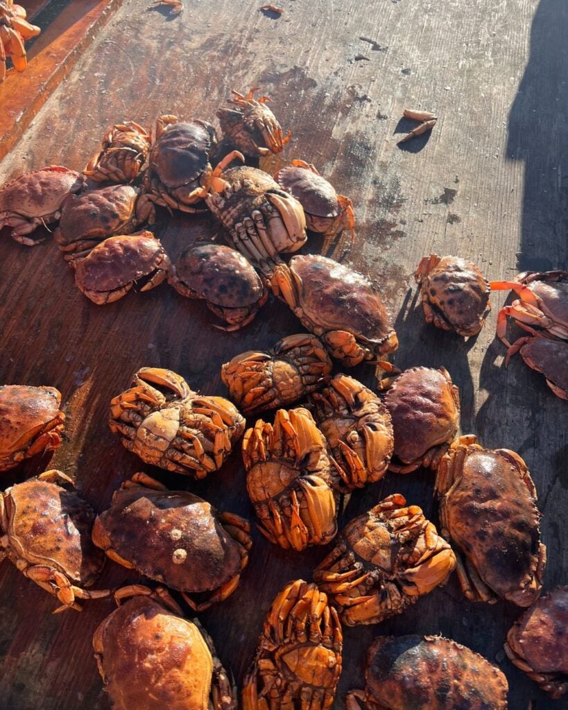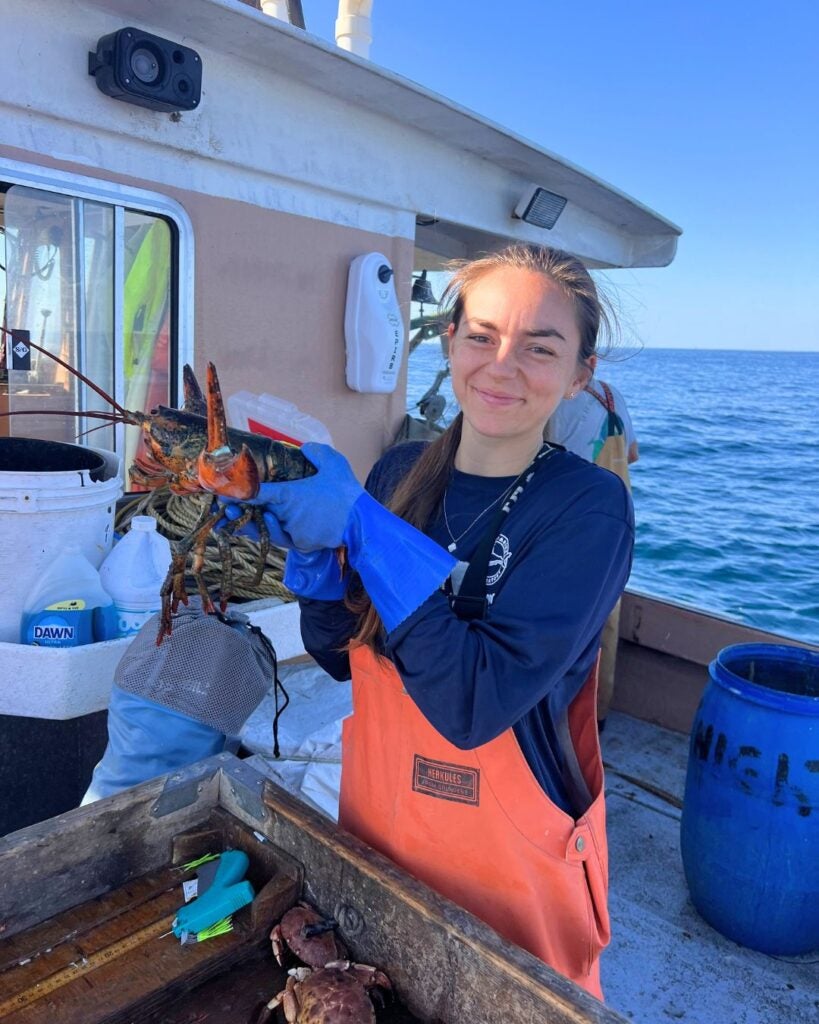 Lobsters are tagged and measured, Jonah Crabs are sometimes brought back for further research, and other species, like black sea bass, red hake, and the occasional cod, are recorded for total length. Students work side by side with captains and first mates, who haul traps and manage operations on deck.