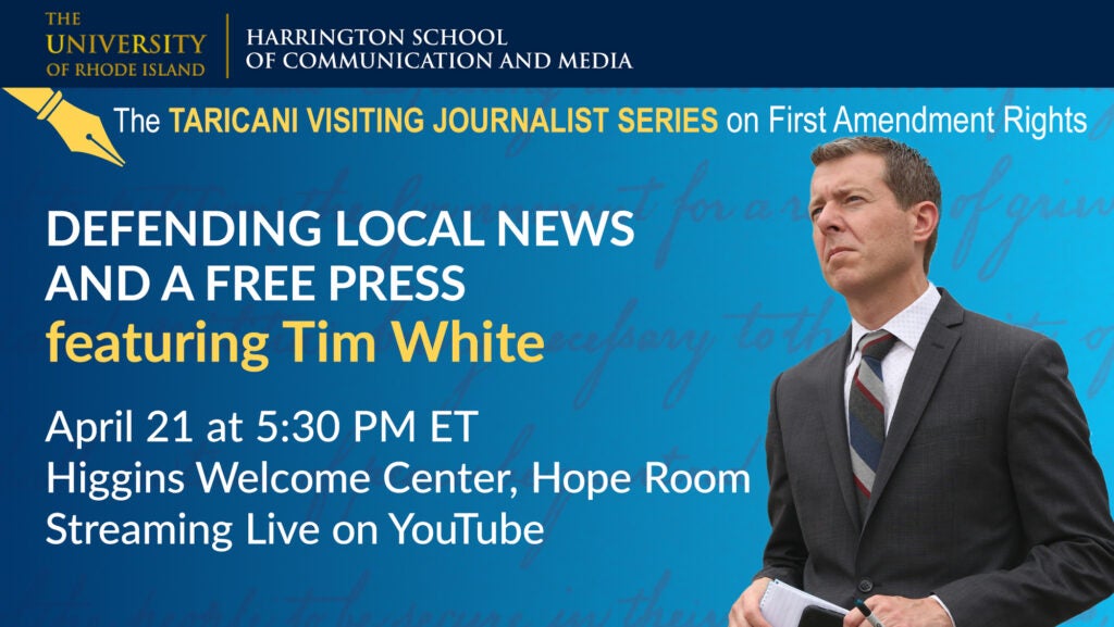 Jim Taricani, H’18, the husband of Laurie White, ’81, was a veteran Rhode Island journalist and nationally respected investigative reporter for nearly four decades with WJAR-TV and a valued member of the URI family. Shortly after he passed away in 2019, Jim’s family announced the creation of the Taricani Lecture Series on First Amendment Rights to honor his memory and his work. As a champion of the news media’s First Amendment rights, Jim was dedicated to protecting those rights, which he saw as critically important to society.