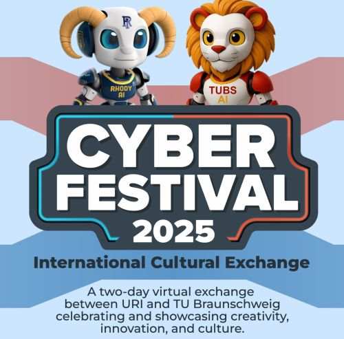 The TU Braunschweig Media Lab and URI Library Innovation Labs are excited to announce the second annual CyberFestival on November 18 and 20 during International Education Week. CyberFestival is an event taking place simultaneously on both continents utilizing a custom-made virtual platform. This festival is designed to foster collaboration, cultural exchange, and skill development between students through interactive workshops, student showcases, and cross-cultural events.