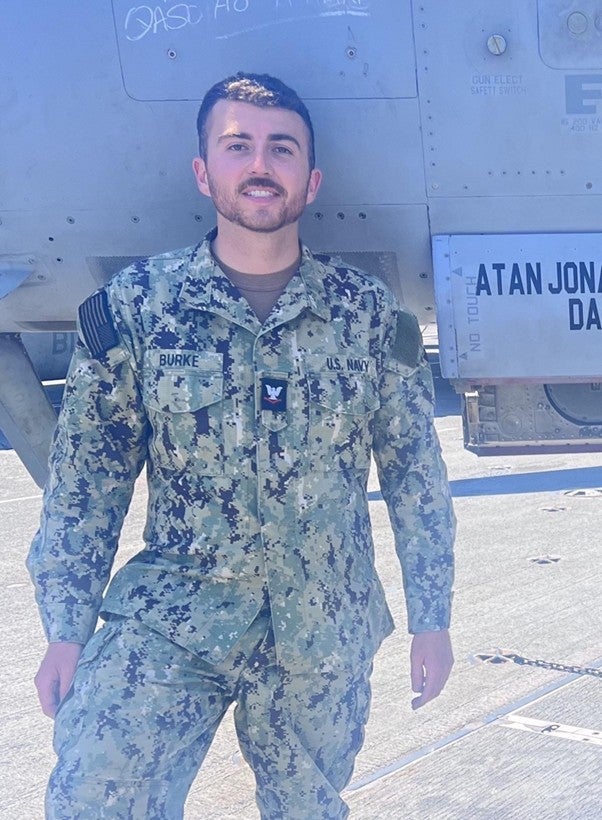Christopher went on to enlist in the U.S. Navy, training and serving as an Avionics Technician (AT2) with the VFA-31 Tomcatters, the Navy’s oldest deployable fighter jet squadron, attached to the USS Gerald R. Ford aircraft carrier. During his four years of active duty, including a nine-month deployment to the Mediterranean in 2023, he specialized in avionics electrical systems, weapons integration, and computer diagnostics for the F/A-18. He recently transitioned into the Navy Select Reserves and hopes to continue his service through an active commission or a future role with the U.S. Coast Guard.