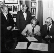 gathered to sign a document.