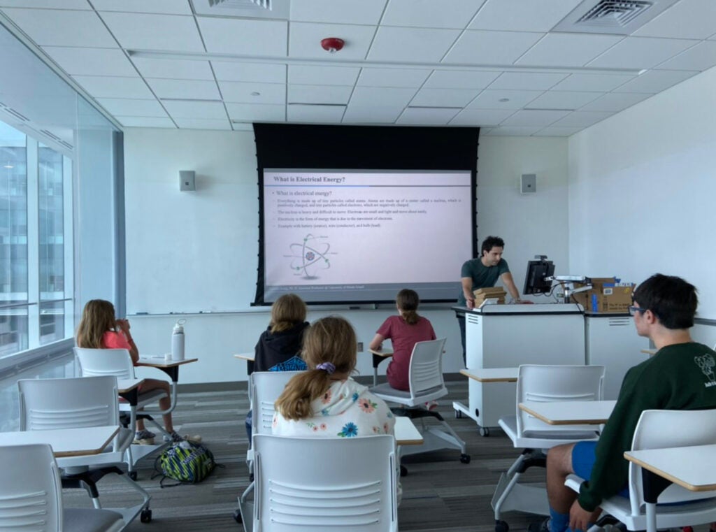 Navy STEM offers hourly paid on-campus jobs open to undergraduate and graduate students of all majors. Crew members serve as near-peer mentors, visiting schools in and around Rhode Island to deliver experiential learning curriculum that builds K-12 student interest in STEM. Crew members also staff expo-style STEM events and summer camps held annually on URI’s Kingston campus for middle and high school students.