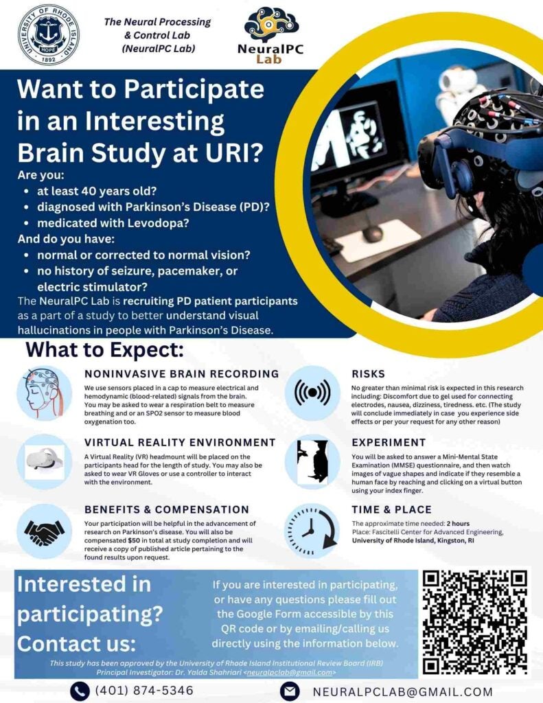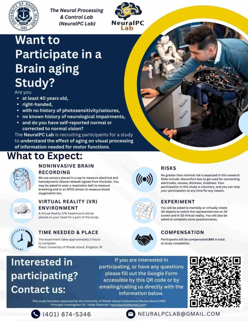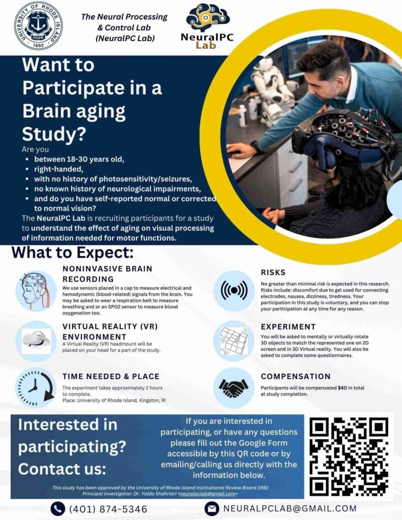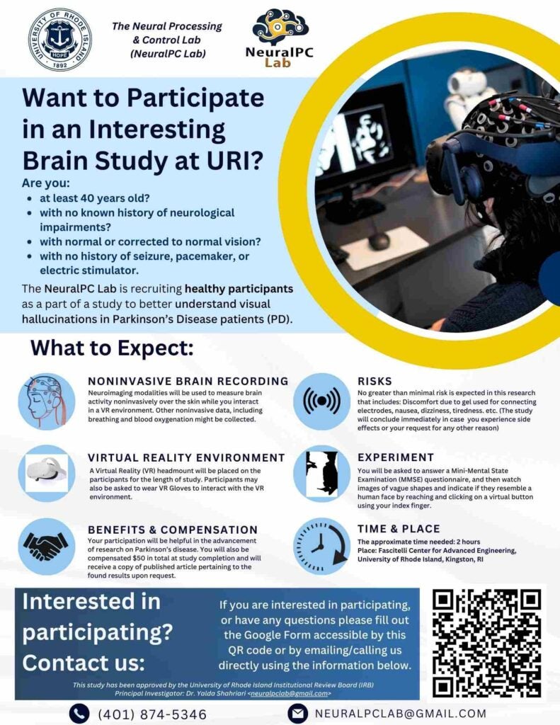 Members of the NeuralPC Lab at URI are interested in testing the influence of individual differences on auditory processing. For that reason, we are seeking individuals to participate in a brief research study with the goal to gain insight into how often people experience phenomena that could influence auditory processing.