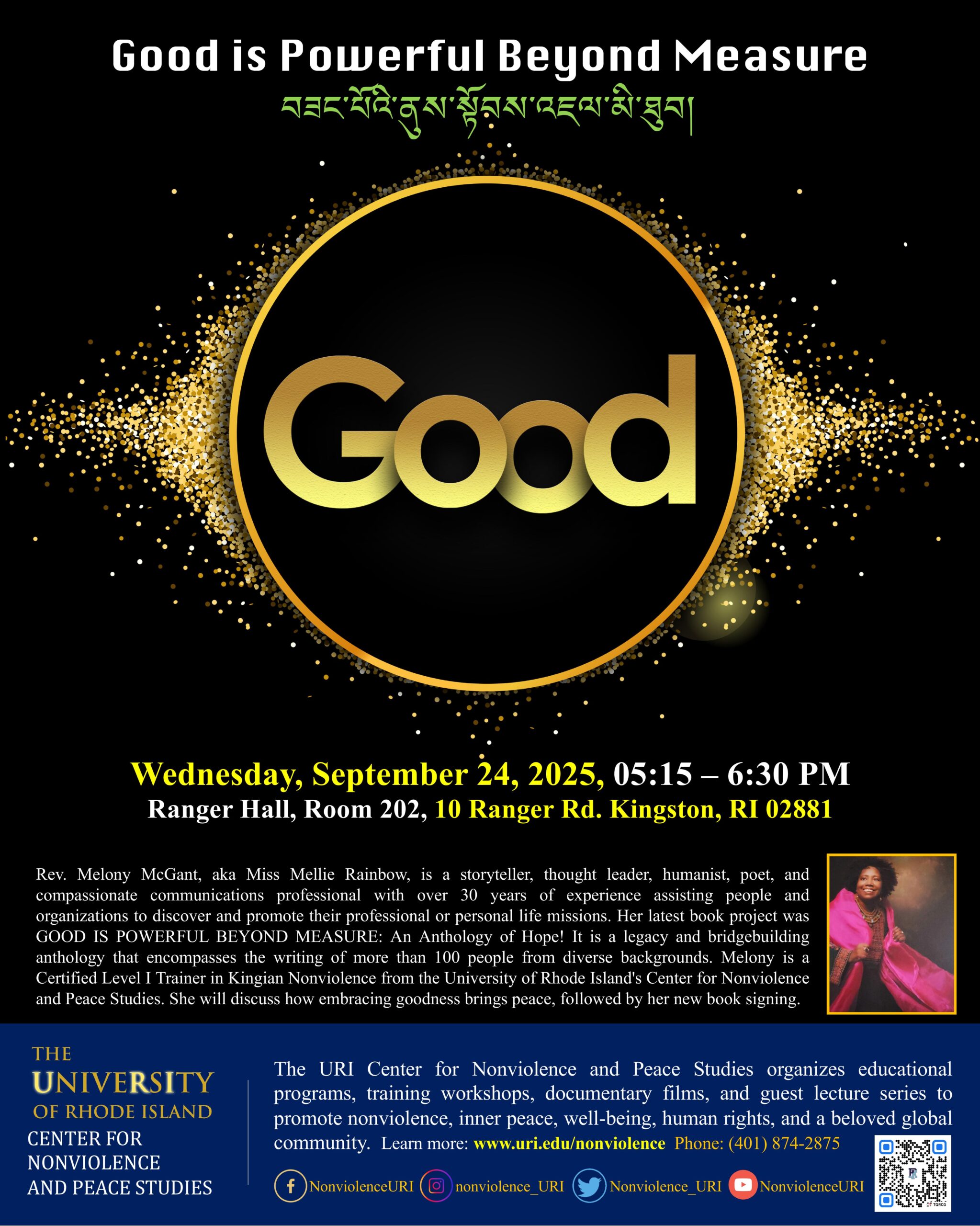 The Center for Nonviolence and Peace Studies hosted Rev. Melony McGant, storyteller, poet, and author of Good is Powerful Beyond Measure: An Anthology of Hope. Rev. McGant shared her reflections on how embracing goodness and compassion fosters peace and community, followed by a discussion and book signing.
