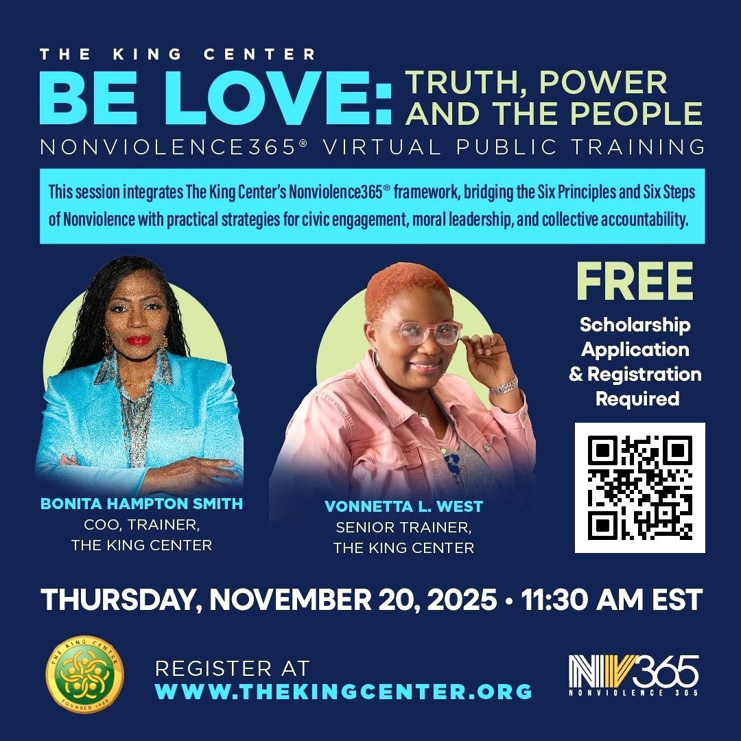 Join The King Center for a free Nonviolence365 virtual public training that blends the Six Principles and Six Steps of Nonviolence with practical strategies for leadership, civic engagement, and community accountability