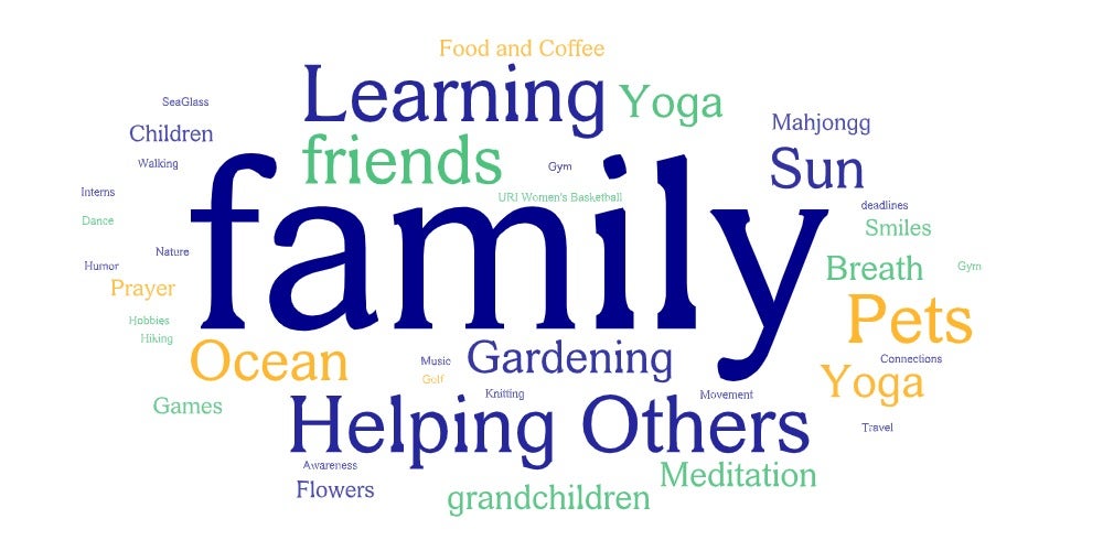 WHAT BRINGS YOU JOY, PURPOSE, PEACE – Thank you to everyone for sharing your thoughts on colorful ‘post-its’ and for contributing to our white board this week. Sharing your thoughts on Joy, Purpose and Peace as a greater community is very impactful especially as so many of you attended the Thewlis Lecture this week that focused on the impacts of kindness and optimism as it relates to healthy longevity. To see the resulting word cloud click here.