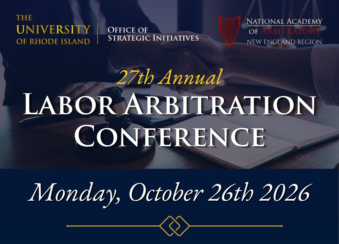 Each year, the University of Rhode Island hosts two conferences: the Labor Arbitration Conference, held in the fall and presented in partnership with the National Academy of Arbitrators, and the Labor and Employment Law Conference, hosted in the spring in partnership with the Roger Williams University School of Law.