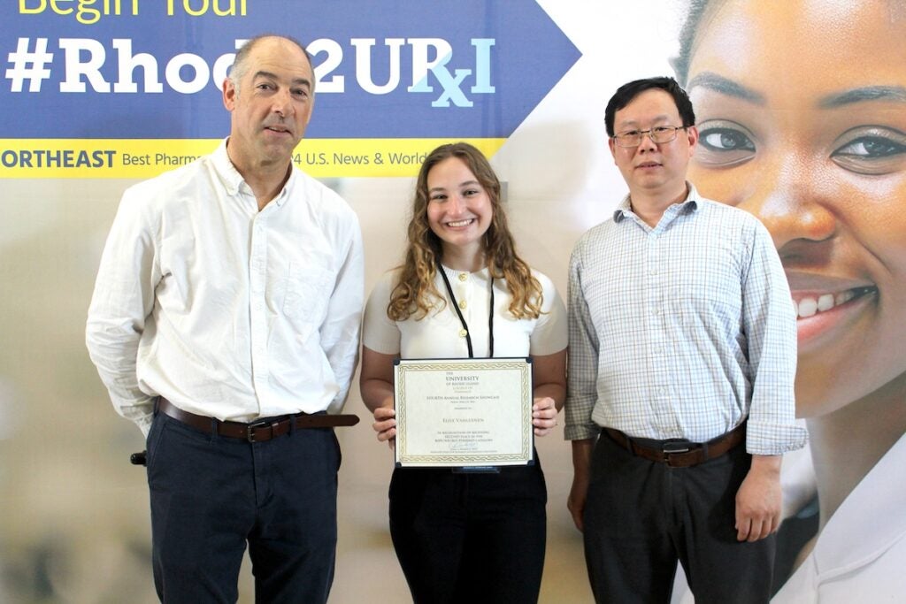 After investigating subjects as varied as cerebral palsy, cancer, Alzheimer’s Disease, depression, neonatal opioid exposure, and many more, dozens of University of Rhode Island College of Pharmacy students showed off their research projects during the fourth annual Student Research Showcase in the lobby of Avedisian Hall on April 25.