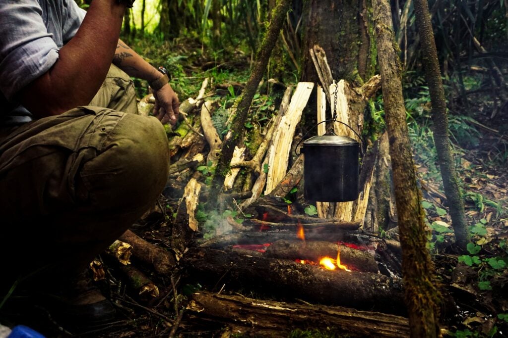 jungle guide making tea for clients in the Malino